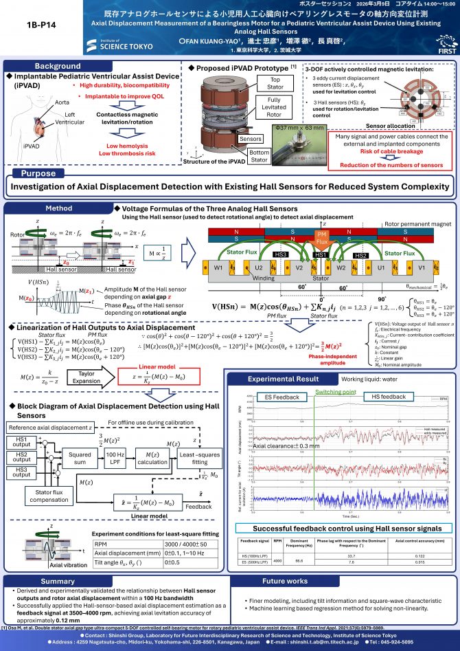 既存アナログホールセンサによる小児用人工心臓向けベアリングレスモータの軸方向変位計測